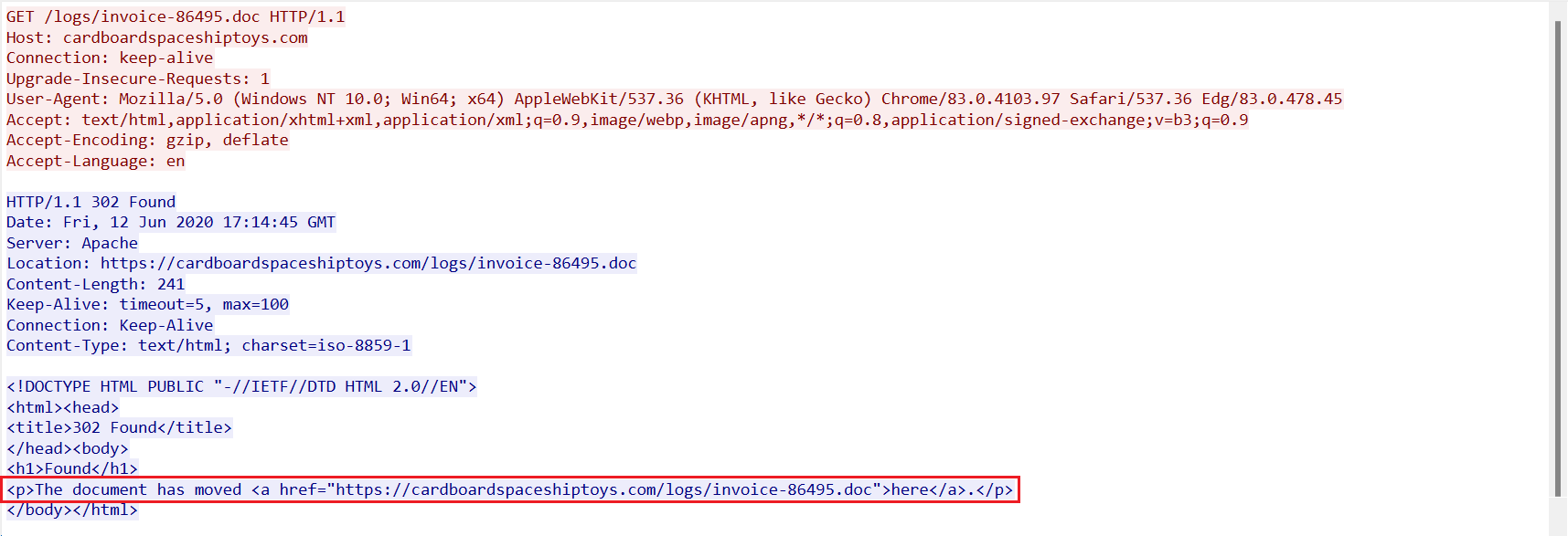 提示document被转移,猜测用户访问http://cardboardspaceshiptoys.com/logs/invoice-86495.doc后,又点击https://cardboardspaceshiptoys.com/logs/invoice-86495.doc