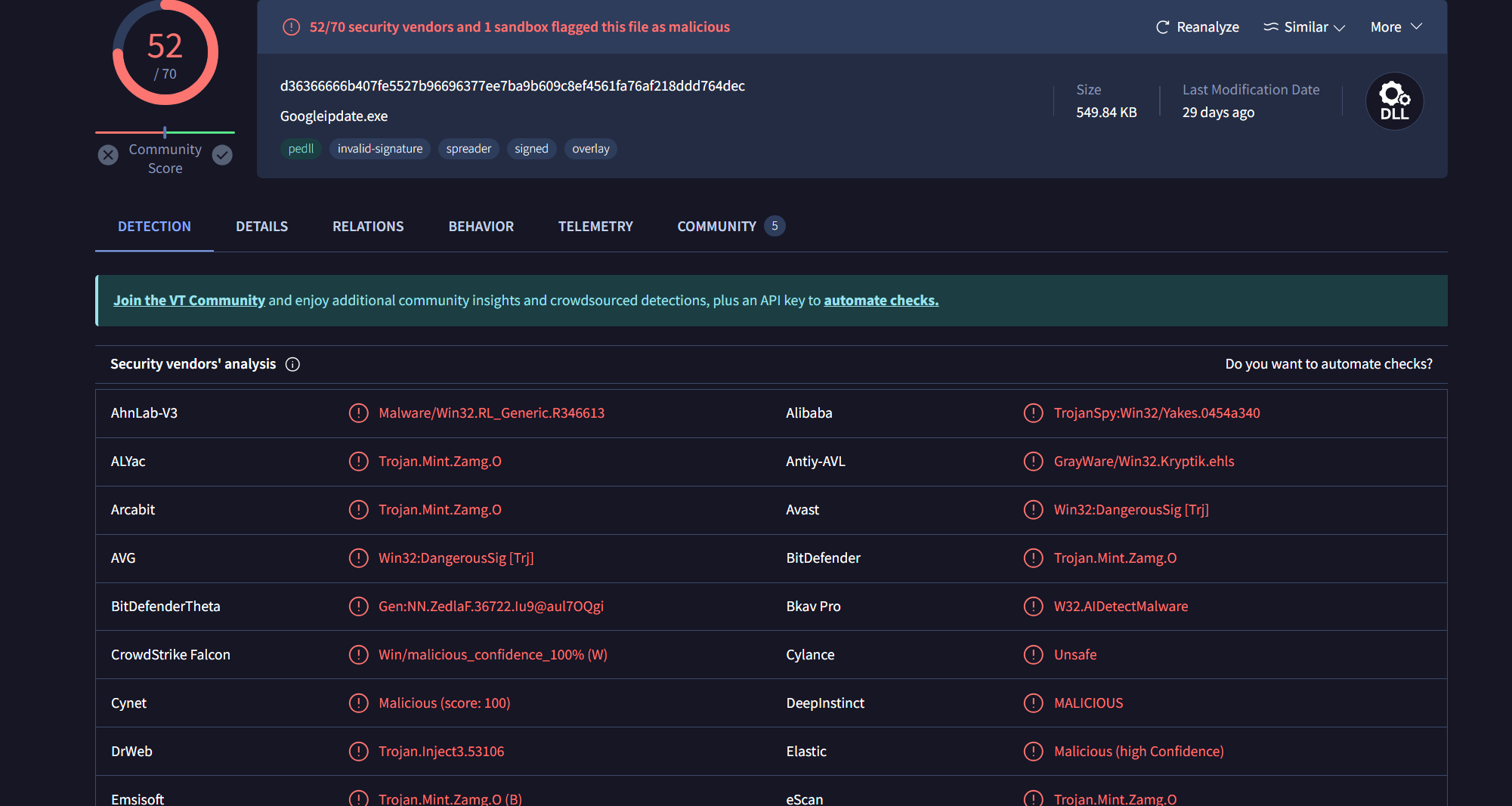 在虚拟机中导出.dll文件,并计算其sha256值,并进行查询,其为恶意软件