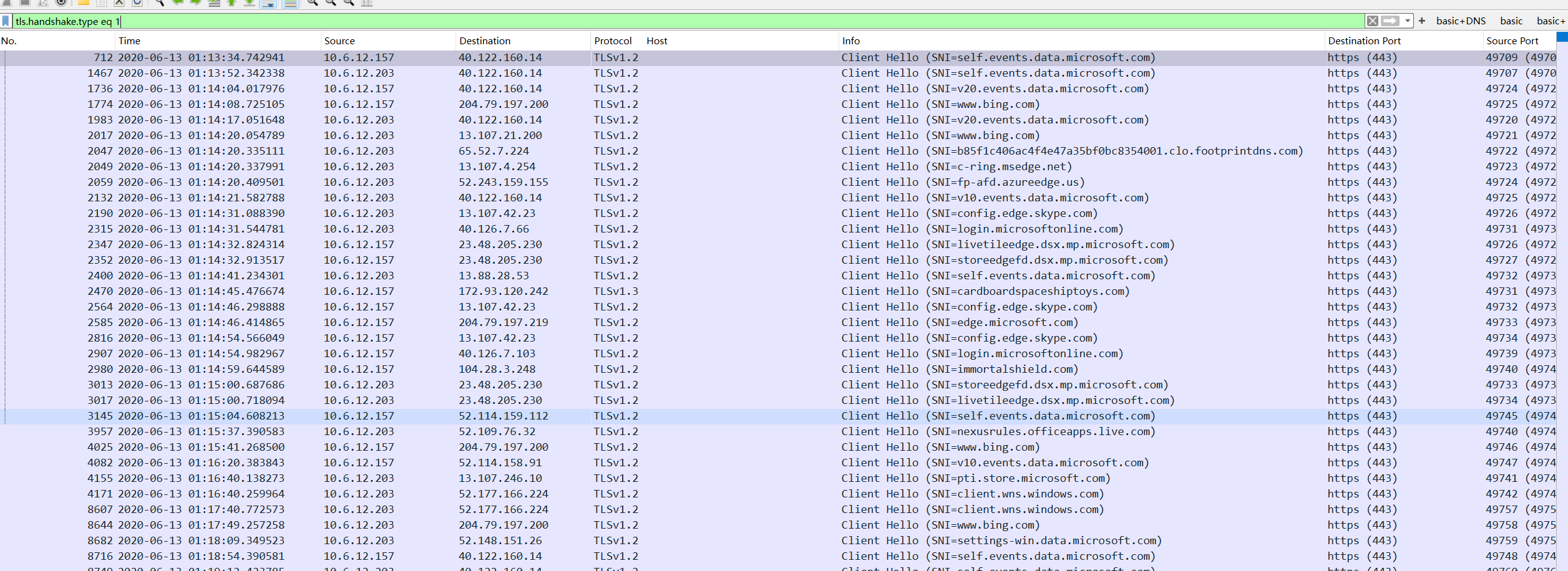 利用tls.handshake.type eq 1过滤条件查询握手信息,好像没什么信息
