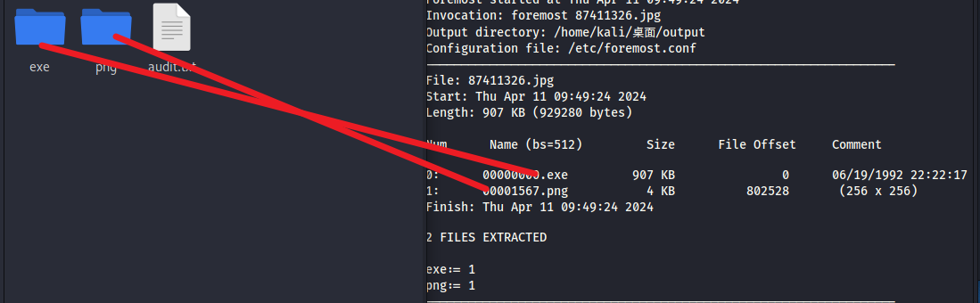 使用foremost分离该文件,得到exe文件和png图片