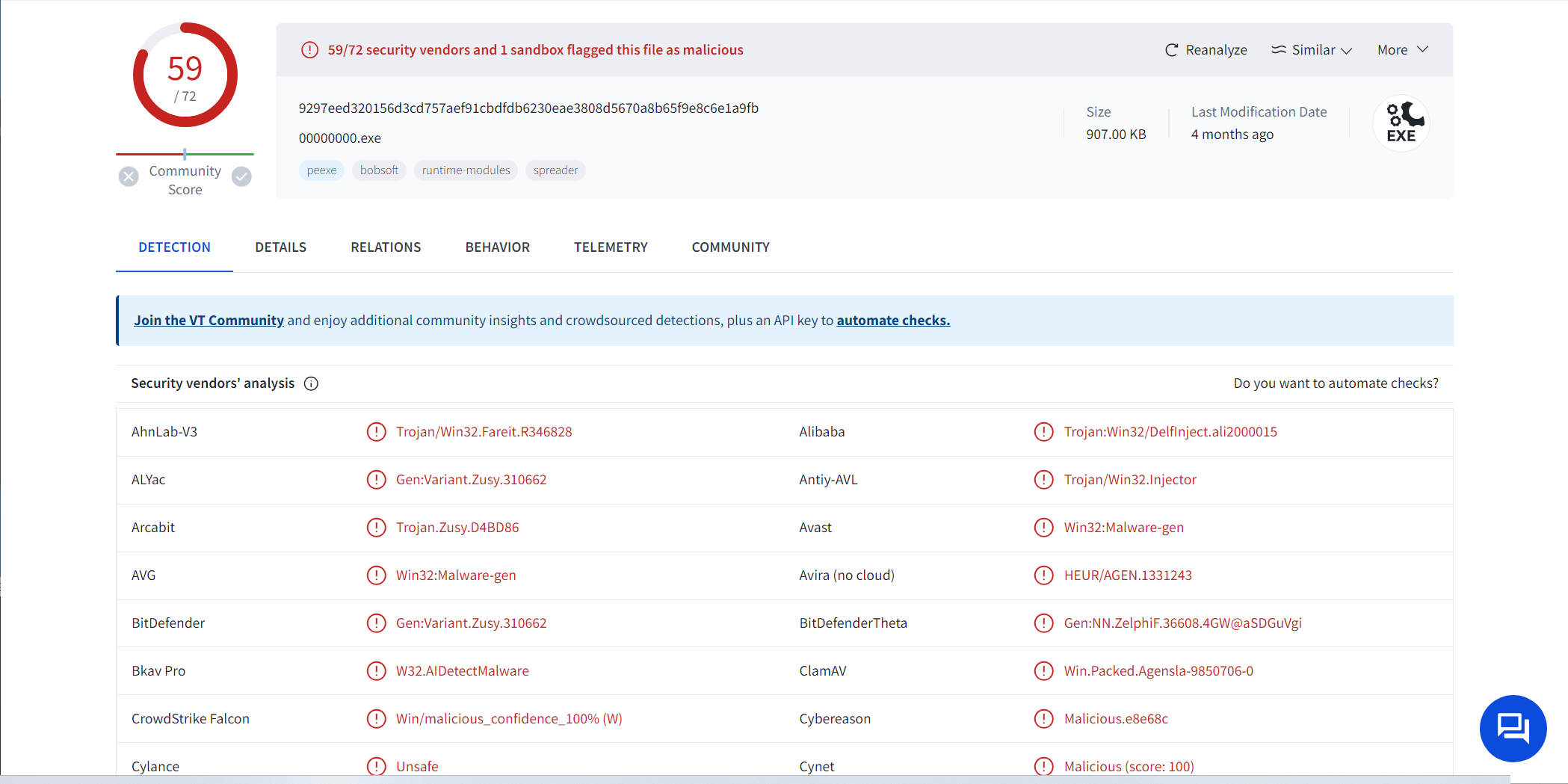 查看exe文件的md5值,并通过virustotal查询