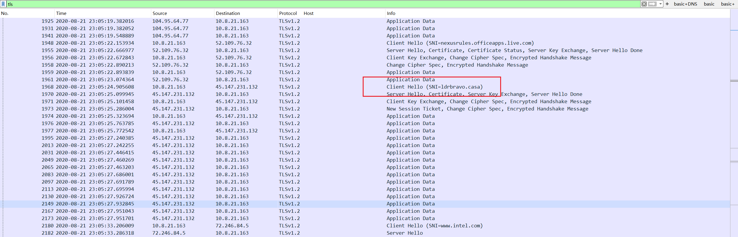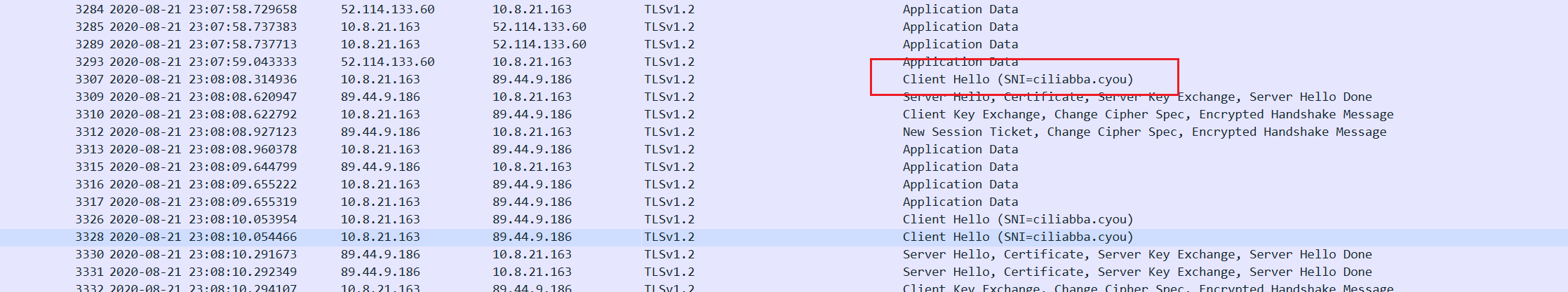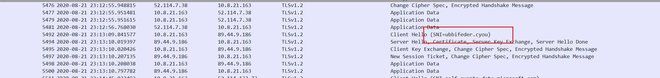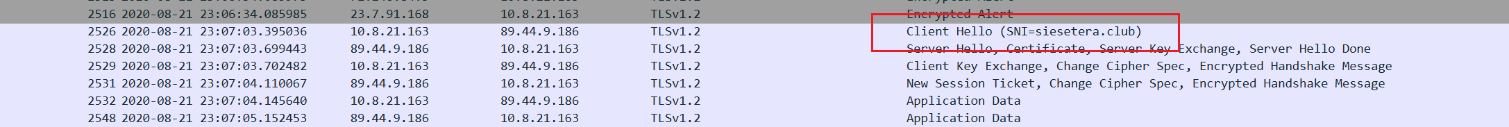 通过查看TLS流,发现除了知名的域名,存在其他域名