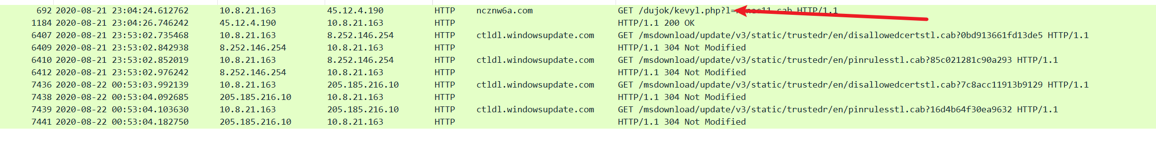 随后请求域名ctldl.windowsupdate.com,IP为8.252.146.254,均返回304。