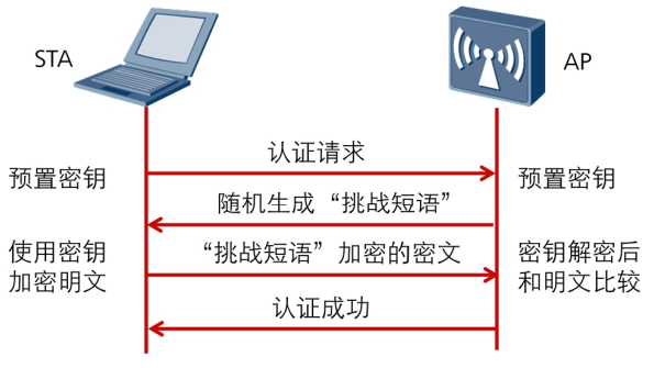 - 共享密钥认证(Shared Key Authentication):在这种认证方式中,接入点要求连接的设备提供与接入点预先共享的密钥进行认证。虽然这比开放系统认证提供了一定程度的安全性,但它已被证明是不安全的,并已不推荐使用。