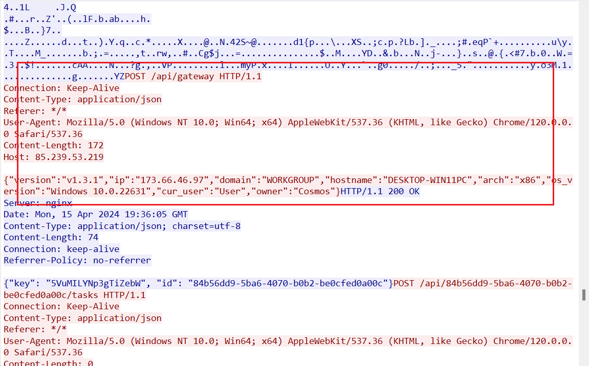 - 85.239.53.219 port 80 - 85.239.53.219 - GET /api/g <– encrypted payload